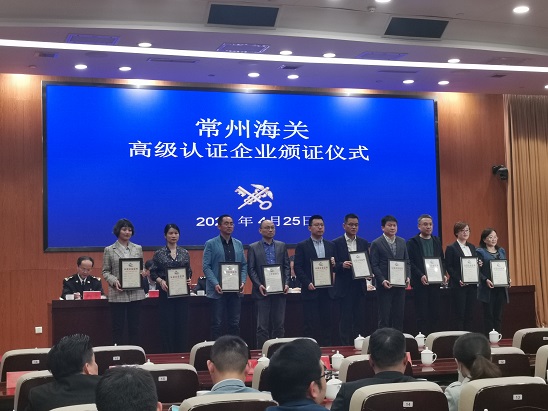4月25日,常州海關高級認證企業頒證儀式在常州市政府順利召開。全市共10家企業上臺領證,常州千紅生化制藥股份有限公司成為全省首家生物醫藥類AEO高級認證企業。